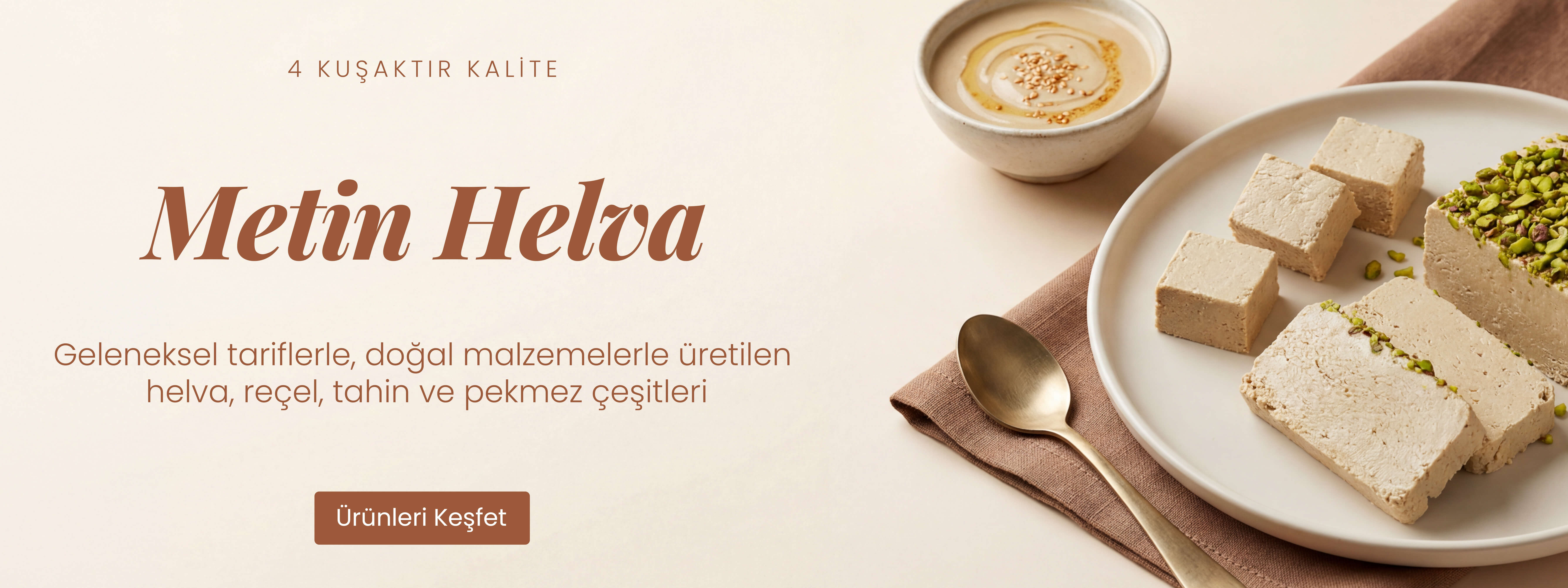 Dört kuşak öncesine uzanan köklü aile geleneğimizin temsilcisi Boztoprak A.Ş. olarak, Metin markamızla helva, tahin, pekmez ve reçel üretiyoruz. Yıllardır değişmeyen lezzetlerimizi, geleneksel tariflerimize sadık kalarak modern üretim anlayışıyla buluşturuyor; ustalığımızı ve emeğimizi her ürünümüze özenle yansıtıyoruz.